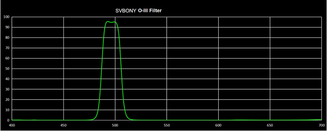 - The 1.25" O-III filter useful for large aperture telescopes through which the light of the Moon can be extremely overwhelming. Allowing just for the Double Ionized Oxygen lines between 495.9nm to 500.7nm to pass through at 90%
