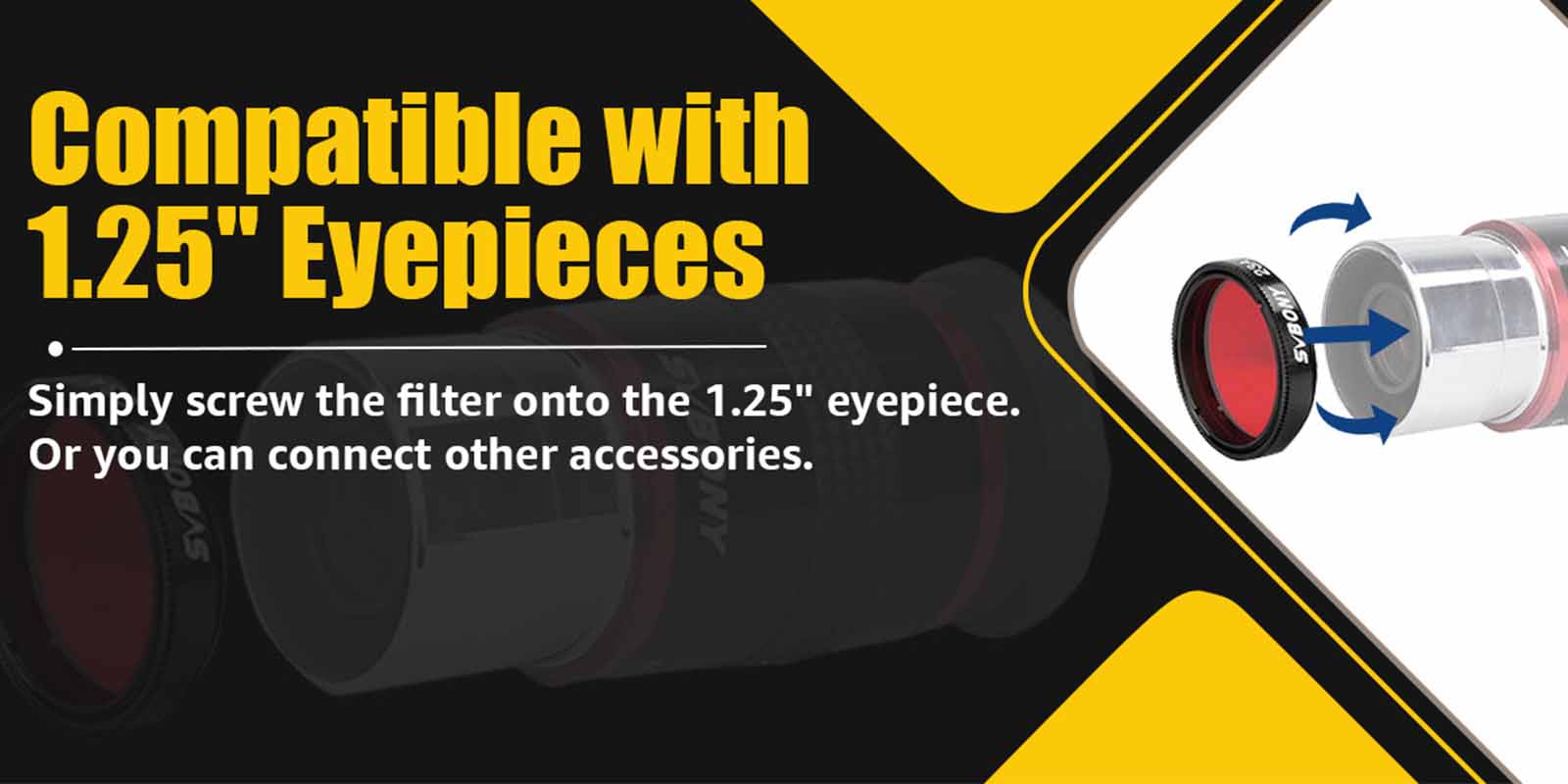 - High quality aluminum alloy frame and optical glass with standard 1.25” filter threads suitable for 1.25” eyepieces and other accessories;