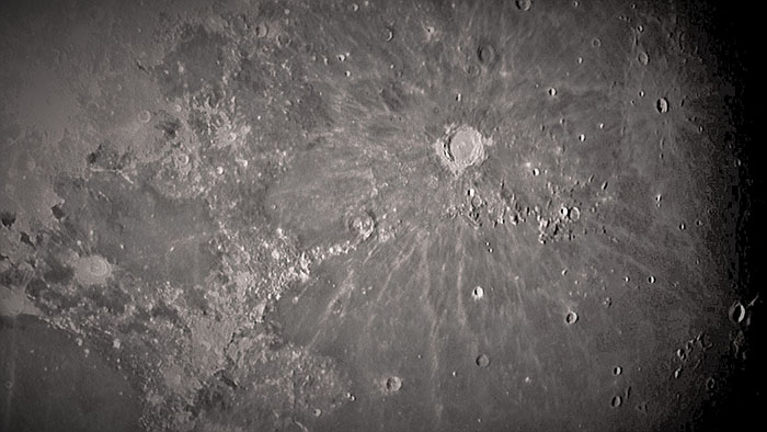 Copernicus Crater. SV503 ED80 f/7,SV305 with Svbony 2X Barlow lens cell screwed into camera nose piece. Sharp Cap Pro, single image, Snapshot command. Edited with Windows Photos. 10/1/21