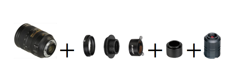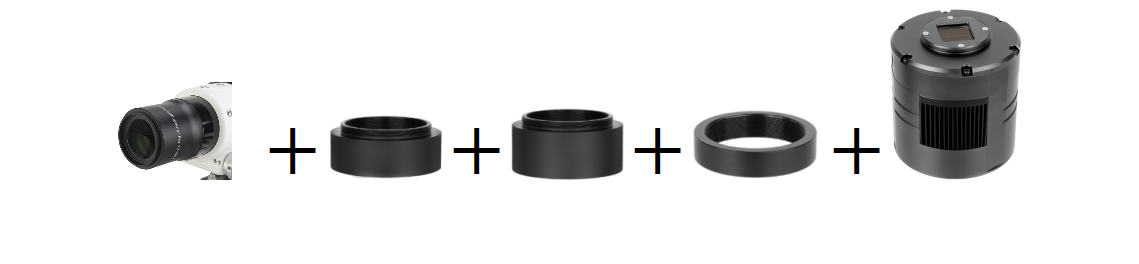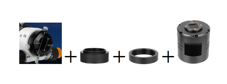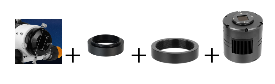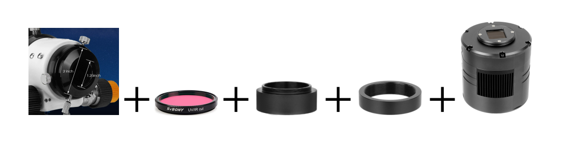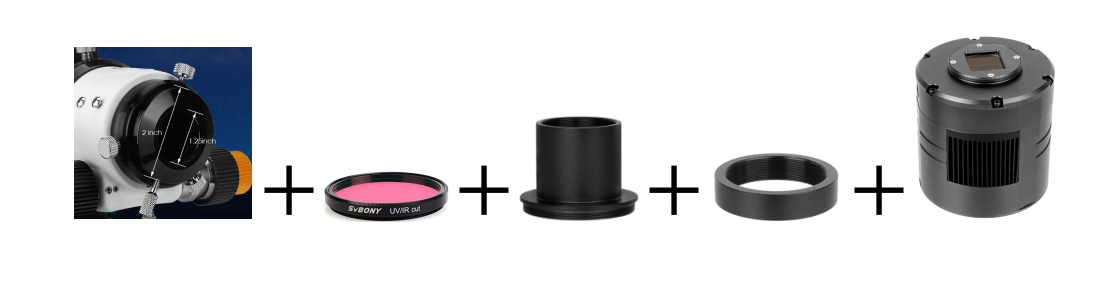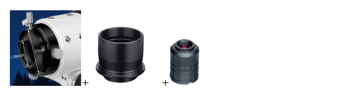 1.25-inch interface telescope + 1.25-inch filter + 1.25-inch extension barrel + camera