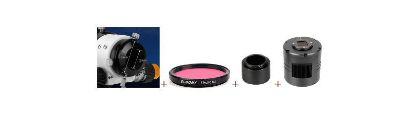 1.25-inch interface telescope + 1.25-inch filter + 1.25-inch T-barrel + T2 adapter + SV405CC camera
