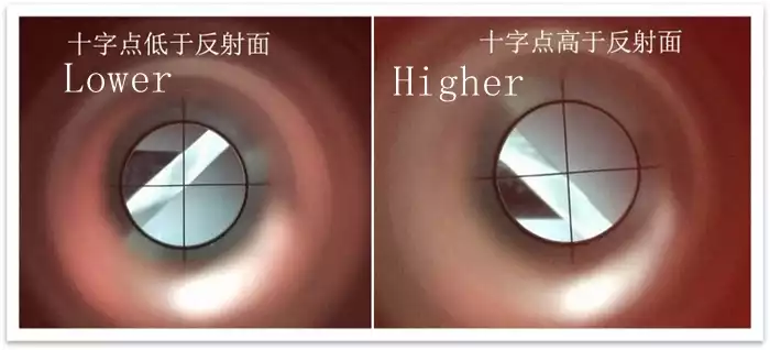 - Make sure the optical center of the secondary mirror fall on the central axis of the eyepiece tube: a). loosen three screws on the secondary mirror so that the mirror could rotate freely along the central axis of the pillar. b). Insert a Cheshire collimating eyepiece into the eyepiece tube, pull the focuser to the maximum, and rotate the secondarymirror90 degrees left and right to make the reflection plane of mirror is parallel to the optical axis of the eyepiece. Seen from the Cheshire, as the rotation angle reaches 90 degrees, the reflection plane of the secondary mirror just changes from "plane" to "line". c). Observe the position between the center of the cross line and the reflection plane of the mirror from the Cheshire, rotate the secondary mirror 90 degrees left and right. Adjusting the position of the secondary mirror through the screws until the center of the reticle is lower than the reflective surface and higher than the reflective surface separately when the mirror is rotated 90 degrees left and right. for example, -90 degrees, The center of the reticle is higher than the reflecting surface. When +90 degrees, the center of the reticle is lower than the reflecting surface, and the distance is basically the same, then the center of the reticle can be considered that it just falls on the center of the secondary mirror when the secondary mirror is at 0 degrees, which also means that the optical center of the secondary mirror falls on the central axis of the eyepiece tube.