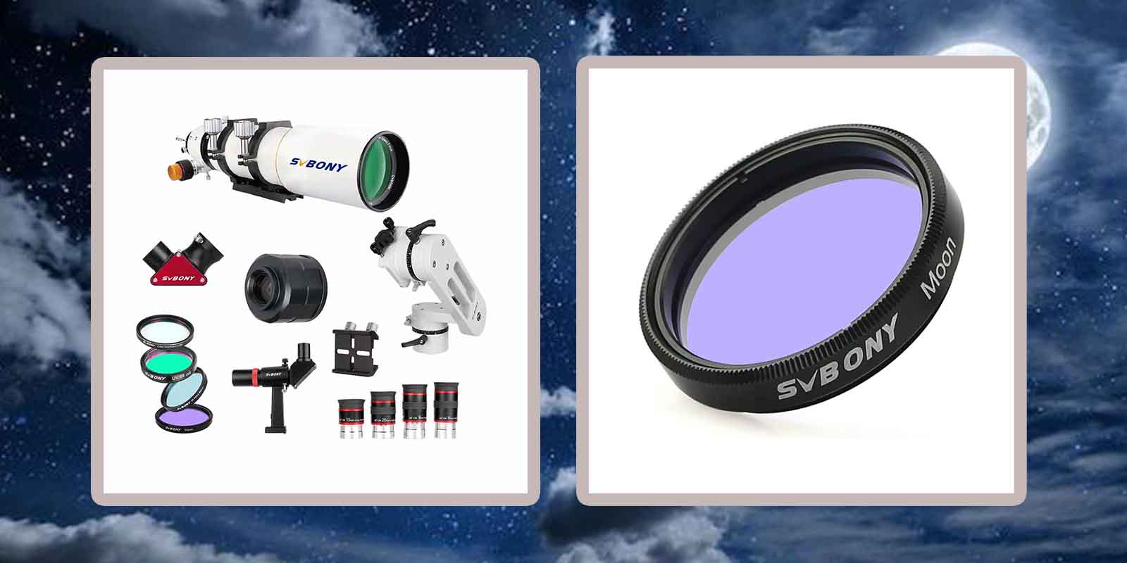 Telescope Essentials: For the best view, set up your telescope early. We recommend this SV503 moon-viewing kit, which allows you to capture more details of the moon and experience more fun. It is also recommended that you consider using a moon filter to reduce glare and bring out finer details.
