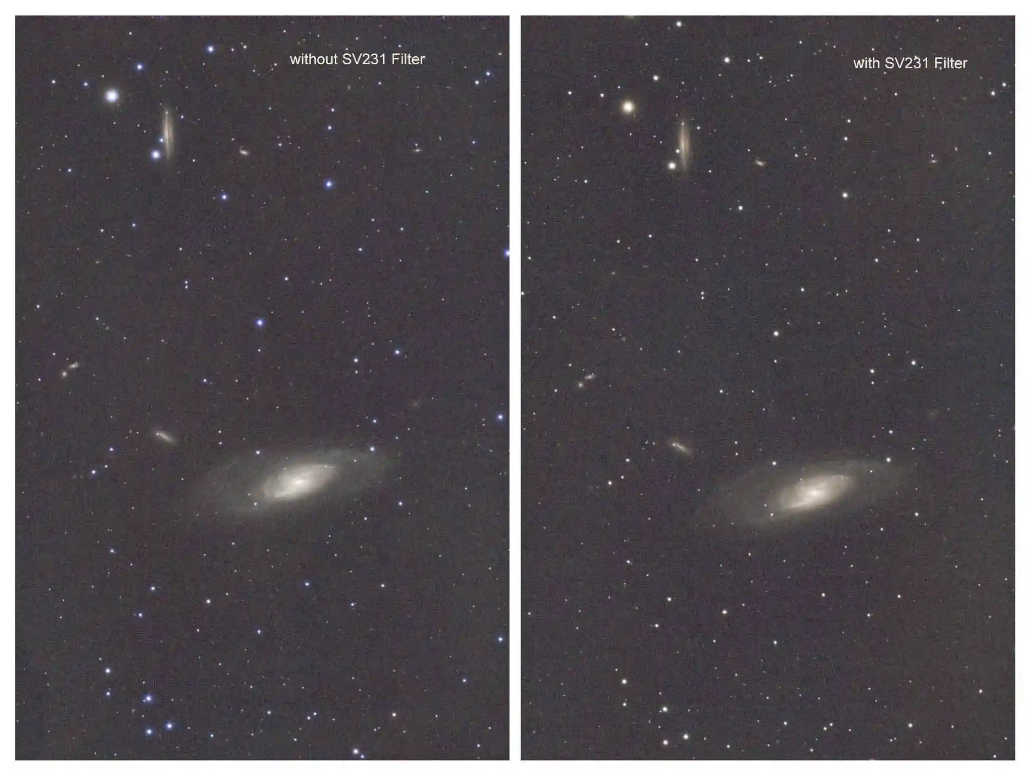 In post-processing, the difference is clear. Nebulae appear more neutral in color with the SV231 filter, while areas without the astronomical filter tend to be more blue. This makes the SV231 Fringe Killer Filter an essential tool for beginners in astronomy, enhancing their visual experience and producing stunning images of the cosmos.