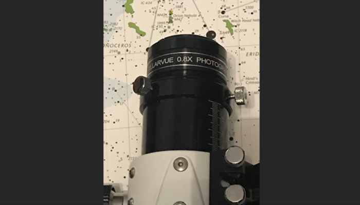 2.4 At the time I was performing these tests, SVBony had not yet released the SV193 0.8x Focal Reducer/Flattener (R/F) designed for the SV503. However, I was able to borrow a Stellarvue 80a Reducer/Flattener designed for 80mm doublet refractors. Figure 4 shows the Reducer/Flattener mounted on the SV503. I continued my imaging evaluation in this configuration.