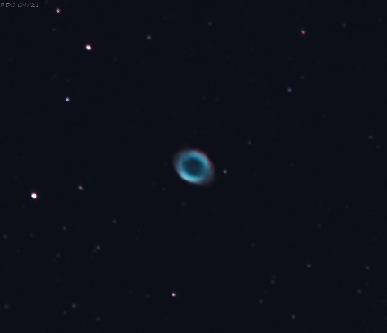 The Ring nebula's angular diameter of 1.4x1.0 arc-minutes makes it a tiny target for this scope at 560mm focal length.