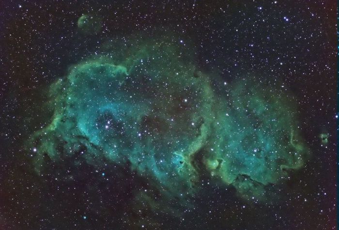 Stacked and processed in pixinsight as HOO by splitting the rgb channels and processing separately as Ha and Oiii because of the NBZ filter.