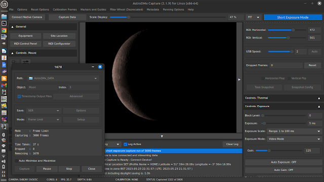AstroDMx Capture then sent the mount/scope to the Moon and focused the scope via the INDI server.
