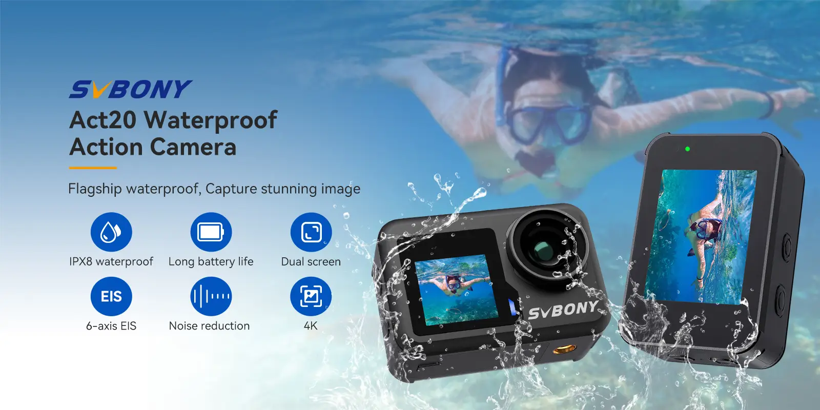 In the pursuit of adventure and excitement, the underwater world often hides endless surprises. The IPX8 waterproof performance of the SVBONY Act20 Action Camera allows you to swim up to 20 meters deep and freeze those unforgettable moments.