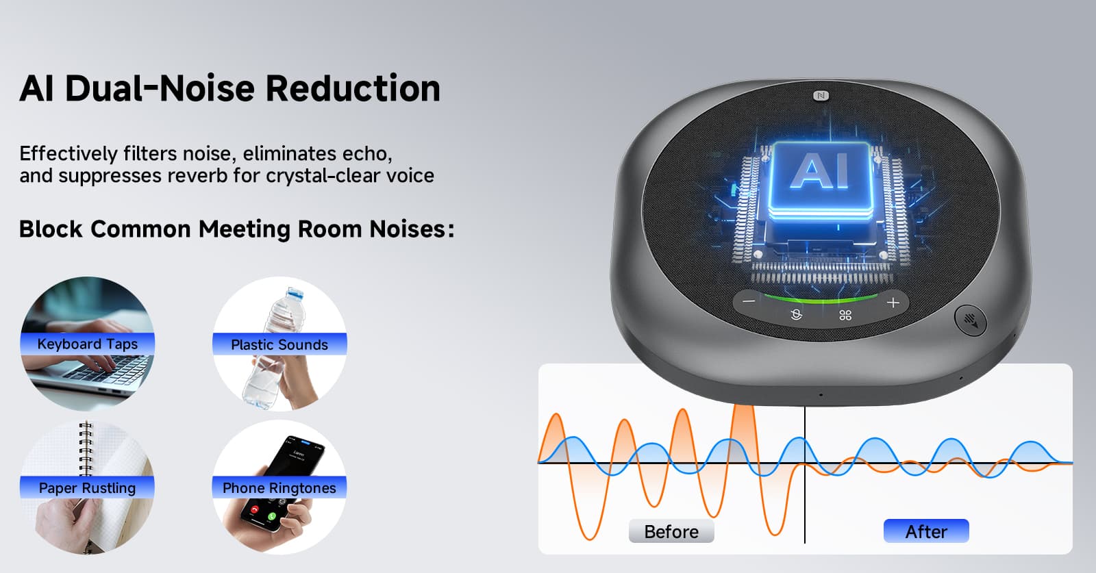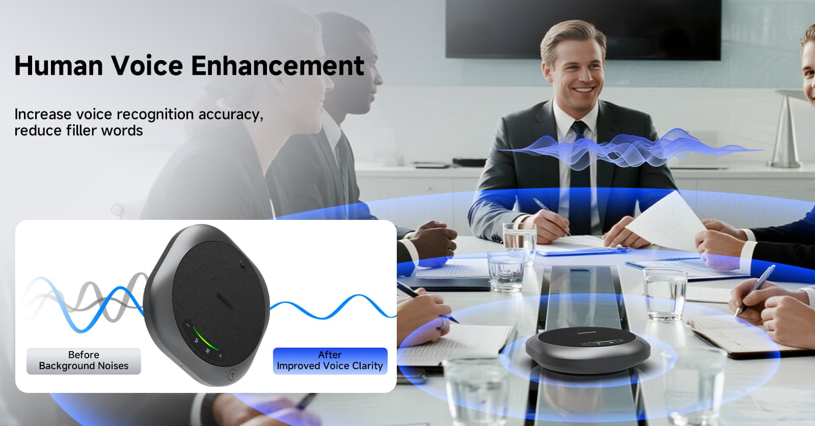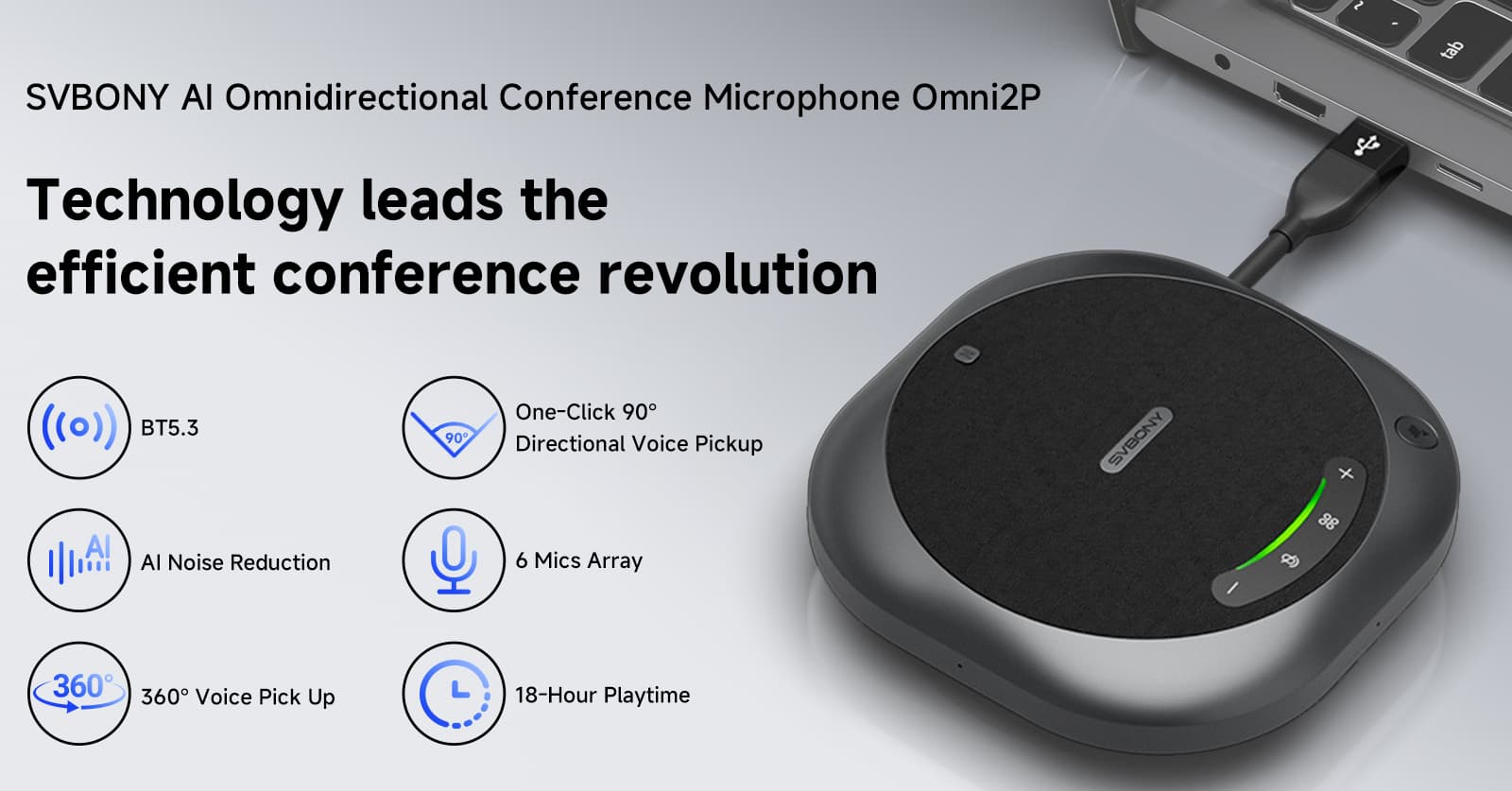 - AI Noise Reduction: SVHub Omni2P conference speaker intelligently differentiates between human voices and background noises; effectively reducing common workplace distractions like mouse clicks; keyboard typing