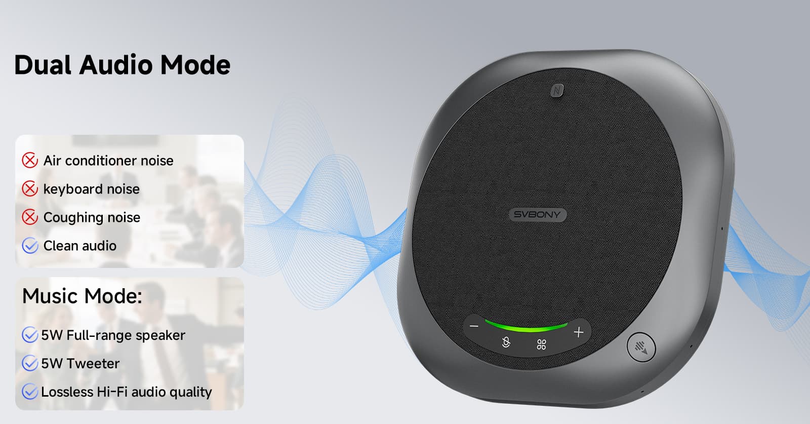 - Dual modes: the 360-degree microphone offers smart conference mode to eliminate distractions and ensure clear communication; while music mode delivers rich; lossless Hi-Fi sound through a 5W full-range speaker and tweeter for an immersive experience