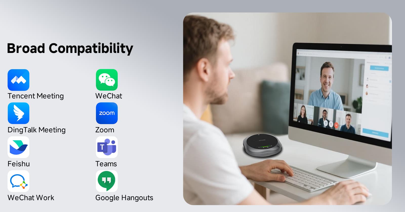 Supports seamless and reliable communication with platforms such as Tencent Meeting, DingTalk, Feishu, WeCom, Zoom, Teams, and Google Hangouts.
