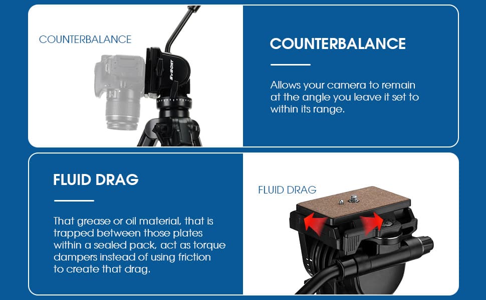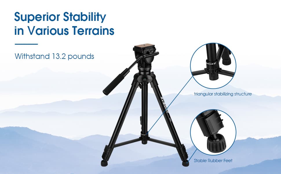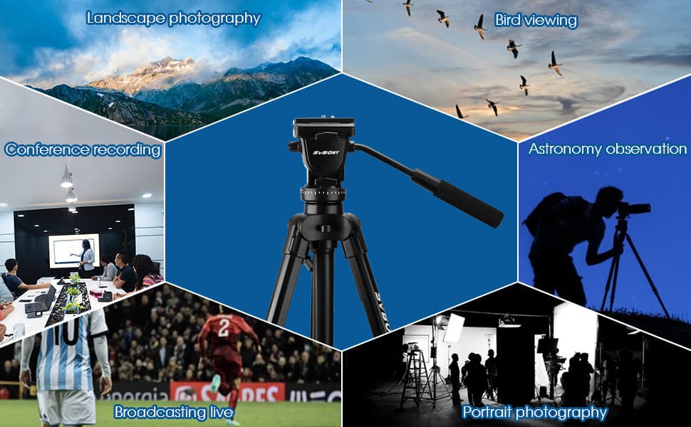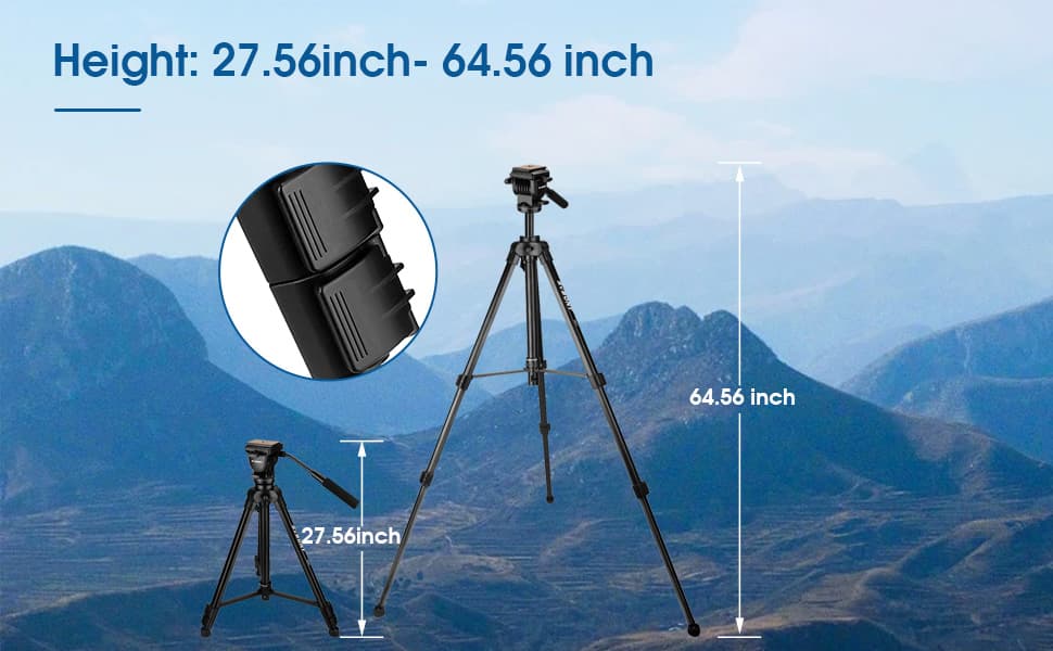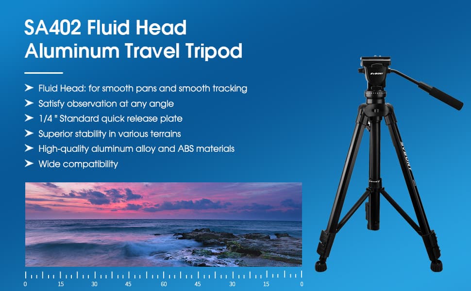 - 3. SA402 Tripod is Made of high-quality aluminum alloy and ABS, more durable and strong with of maximum height is 64.56 inches.