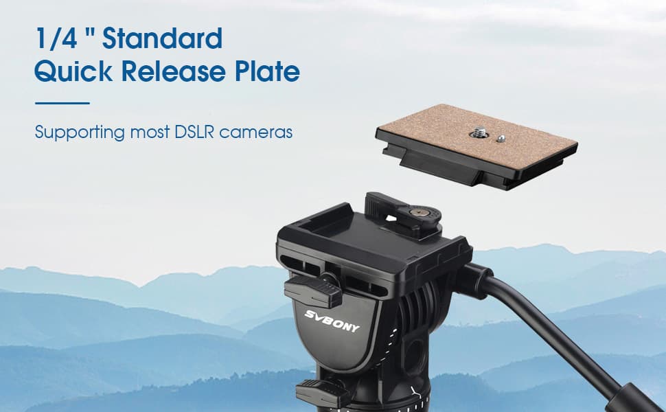 - It comes with a standard 1/4 "quick release plate, you can install and remove the camera in seconds. That supports most DSLR cameras.