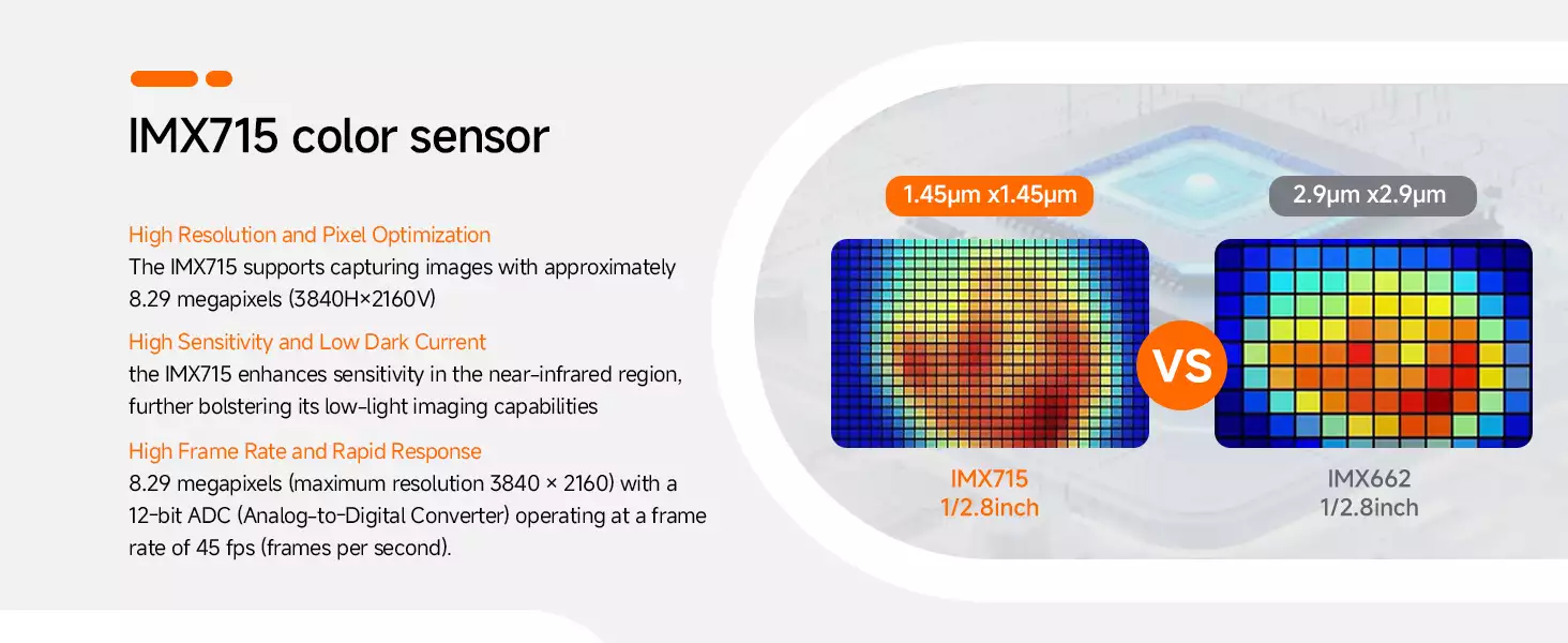 High Sensitivity and Low Dark Current: The IMX715 enhances sensitivity in the near-infrared region, further bolstering its low-light imaging capabilities.