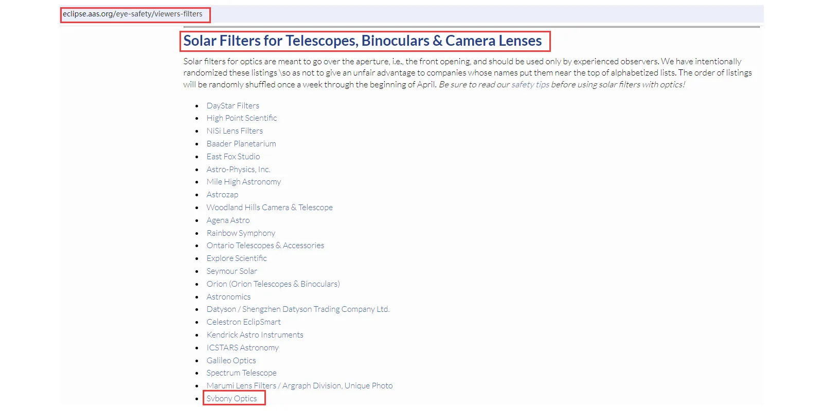 Our solar filters have received professional certification from AAS (American Astronomical Society) https://eclipse.aas.org/eye-safety/viewers-filters