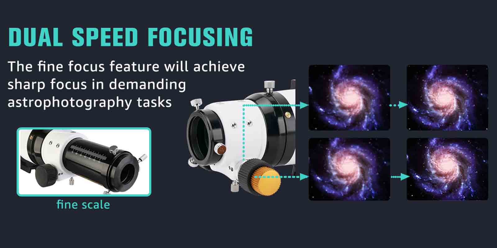 • Dual-Speed Focuser for Precision: Featuring a 1:10 dual-speed rack and pinion focuser, the 2-inch toothed focuser allows for smooth and precise focusing adjustments, ensuring sharp images for both visual observation and astrophotography;