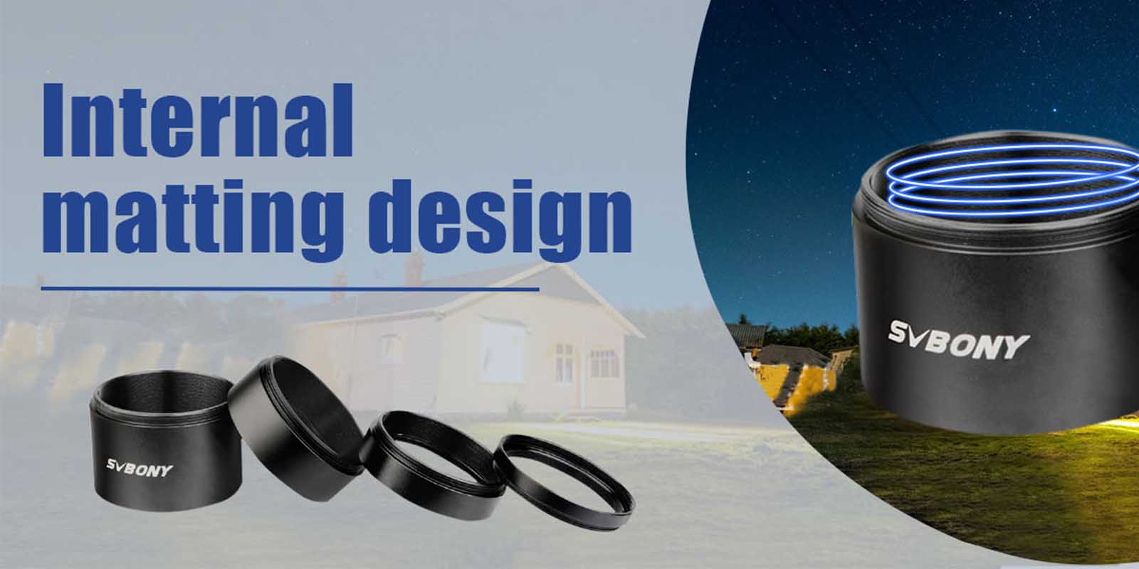 Internal threaded design eliminates stray lights and reflection light for clearer and sharp image during solving spacing problems in astrophotography.