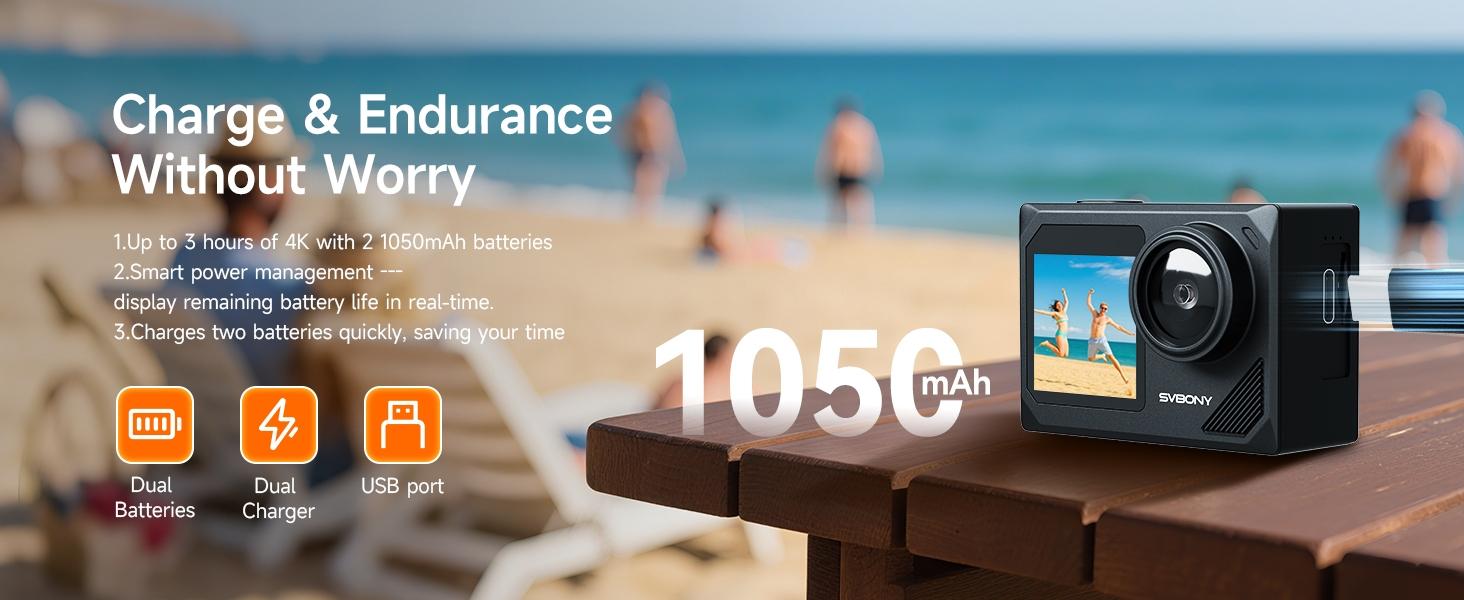 - 4K 3-Hour Endurance: Dual batteries support 3 hours of 4K recording. The fast dual charger saves time, while real-time power monitoring ensures uninterrupted performance.